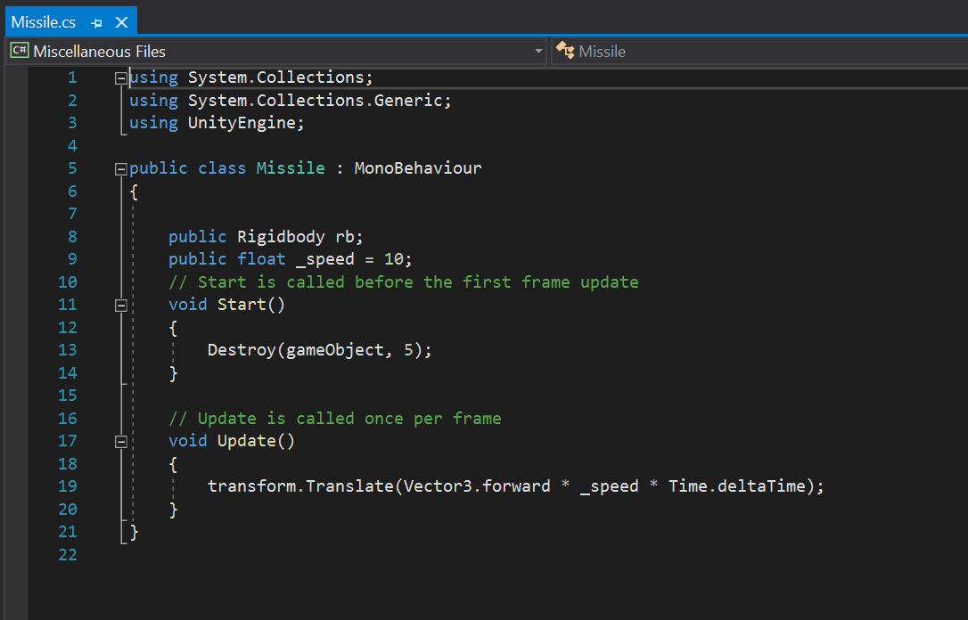 Above is the code I used to make the missiles shoot, below is a video of the effects.